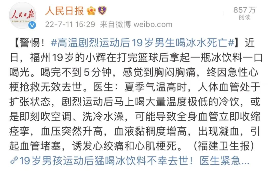冰水本身挺不错!夏天降温利器。但如果喝得太快太猛,可能会刺激到消化道,且容易诱发临近器官的痉挛。