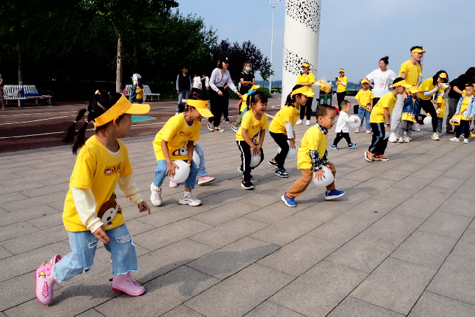 这个周末,注定是难忘的而美好的!穿上小黄T,戴上小黄帽,优贝娃成了公园里一道亮丽的风景线。