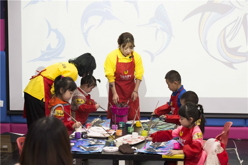 在报名期间参训的老师们就备受关注且十分好奇的就是优贝色彩3.5~5岁儿童美术现场观摩课,我们把整个课堂搬到了会场,