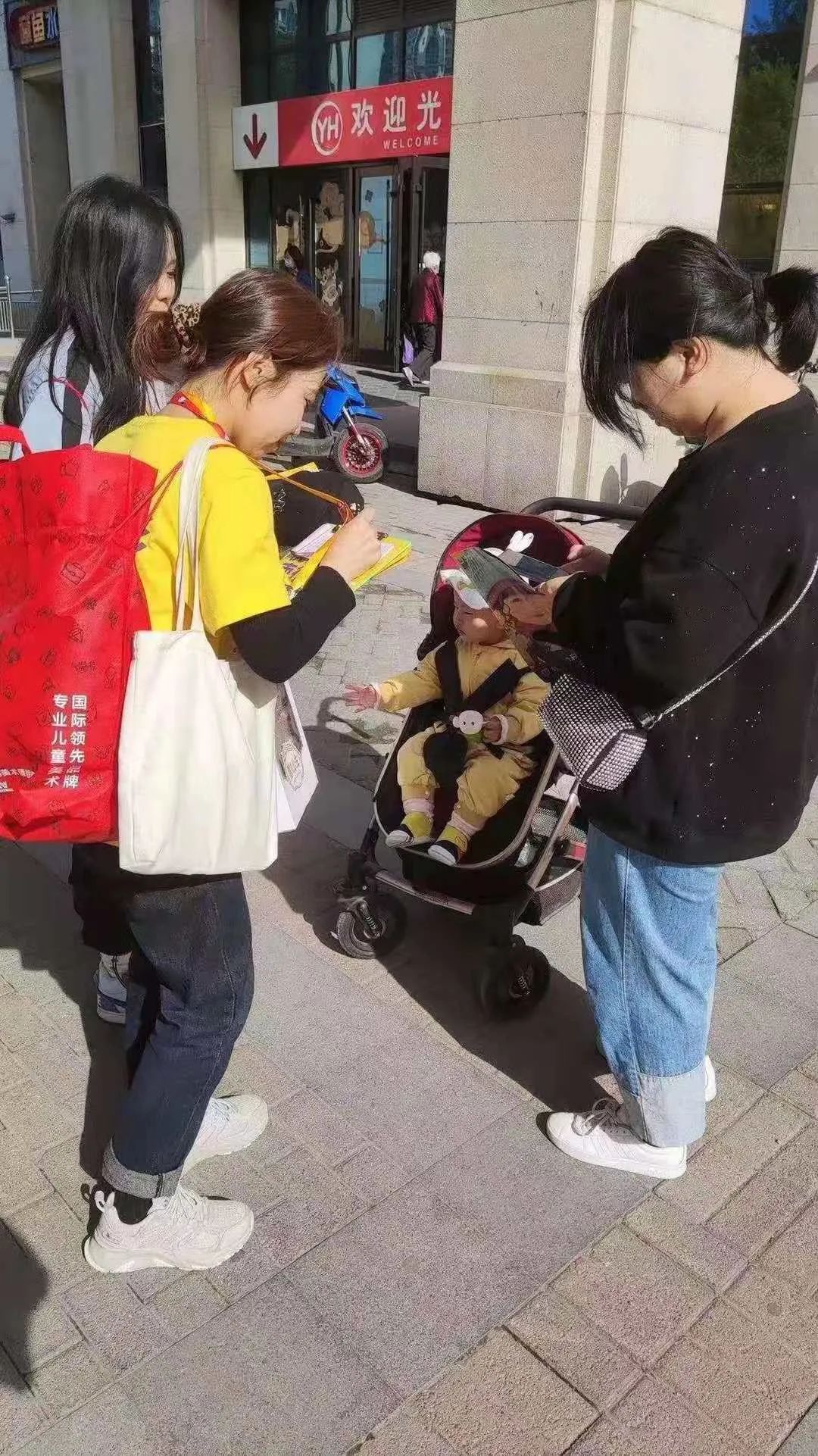 5月6日早上七点,所有人集合啦!南部战区六家校区67人集合,北部战区七家校区64人集合。总参战13家校区,全部集合完毕。那一天,在沈城的大街小巷,在孩子们的活动区域,你一定看到过一群身穿黄色T恤的优贝嗨宝人,背着玩具,手里拿着宣传资料,在跟不同的意向讲解课程。“68元两节课,如果您的孩子不喜欢,我们不勉强,您可以先体验一下……”无论是南战区还是北战区,所有校区凝聚成一股绳,为此次百团大战而发力。“在人流中迅速寻觅客户,看到孩子的就双眼放光。”