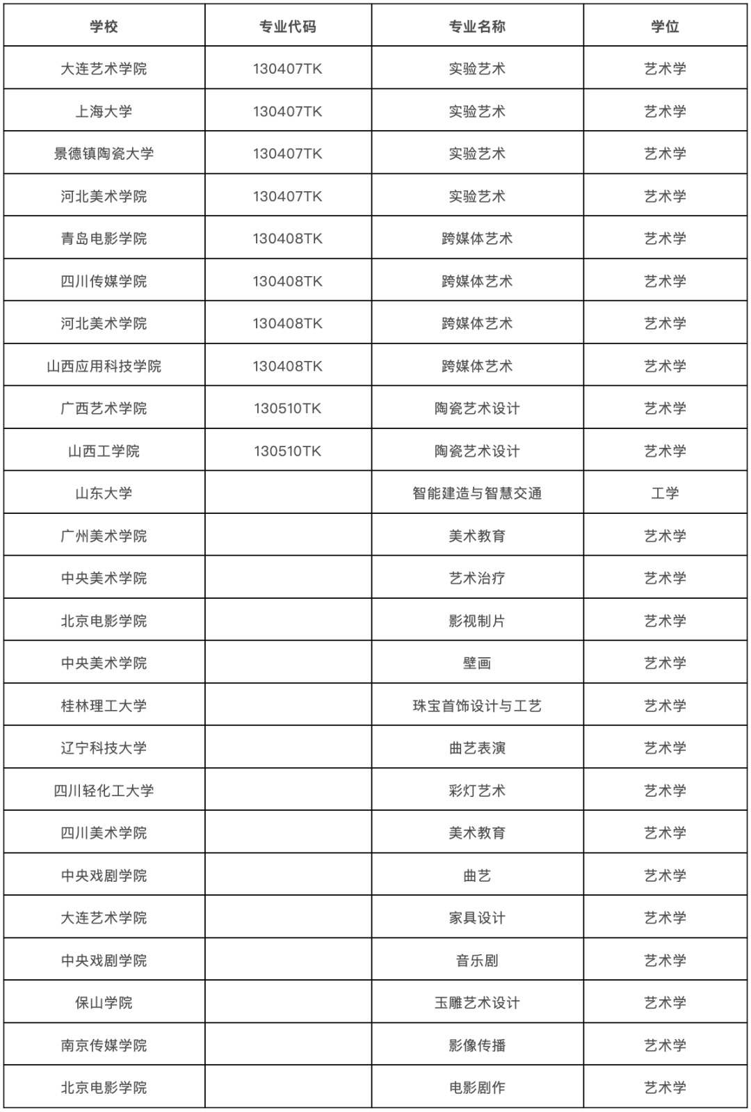二、其他新增开设艺术类专业