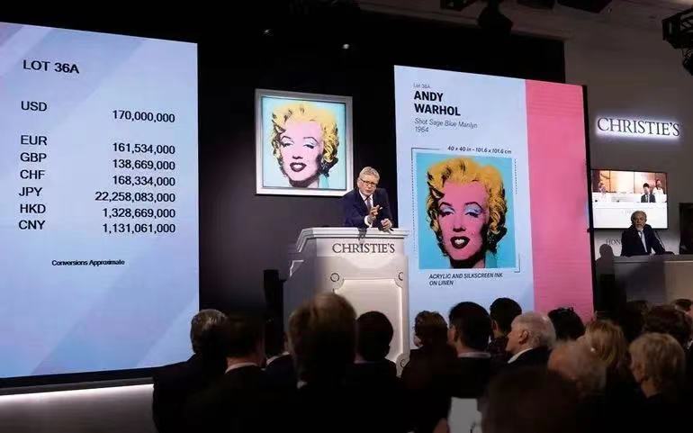 在纽约佳士得举办的“Thomas and Doris Ammann基金会珍藏晚拍”上,参与竞拍的36件作品汇聚了20世纪的诸多艺术大师佳作。北京时间5月10日早晨参与拍卖的这一些列拍品中,诞生了最昂贵的20世纪艺术品——安迪·沃霍尔的经典巨作《枪击玛丽莲(鼠尾草蓝色)》(Shot Sage Blue Marilyn)。该作品以1亿美元起拍,全球藏家激烈竞拍,很快就打破安迪·沃霍尔作品拍卖纪录,最后以1.7亿美元被美国藏家竞得。加佣金1.95亿美元(约13.12亿人民币),一举超越毕加索《阿尔及尔的女人(O版)》(1.794亿美元成交)。