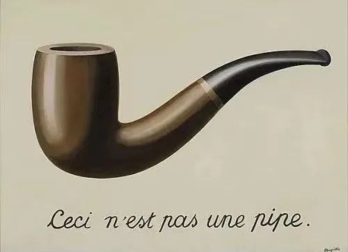 马格利特著名的烟斗系列,在绘有一只烟斗的画中写着“这不是一只烟斗”的句子,展现了图形和语言之间的复杂关系,在哲学和绘画领域引发了诸多兴趣和讨论。