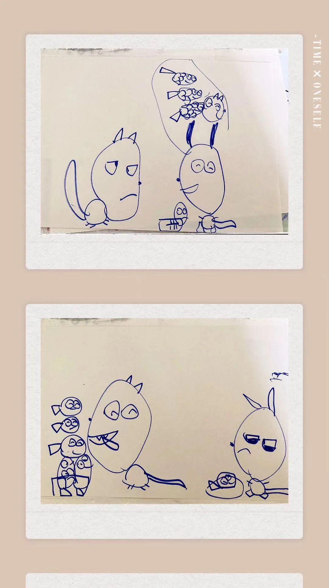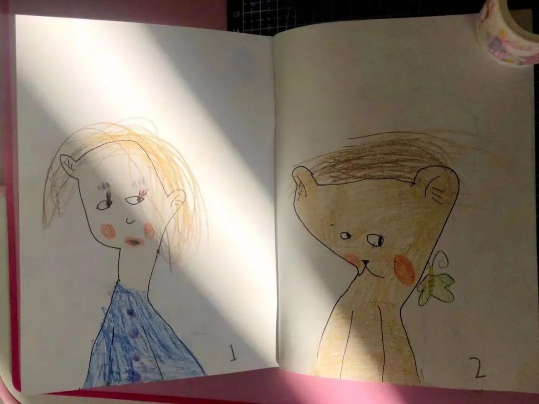 有时候妈妈工作家务两头忙,顾不上跟孩子更多的交流,然然会把每天的绘画本放在妈妈的床头,孩子的小心思,小状态都可以通过一幅幅妙趣横生的画,展现出来。这也成了母女俩默契的交流方式。
