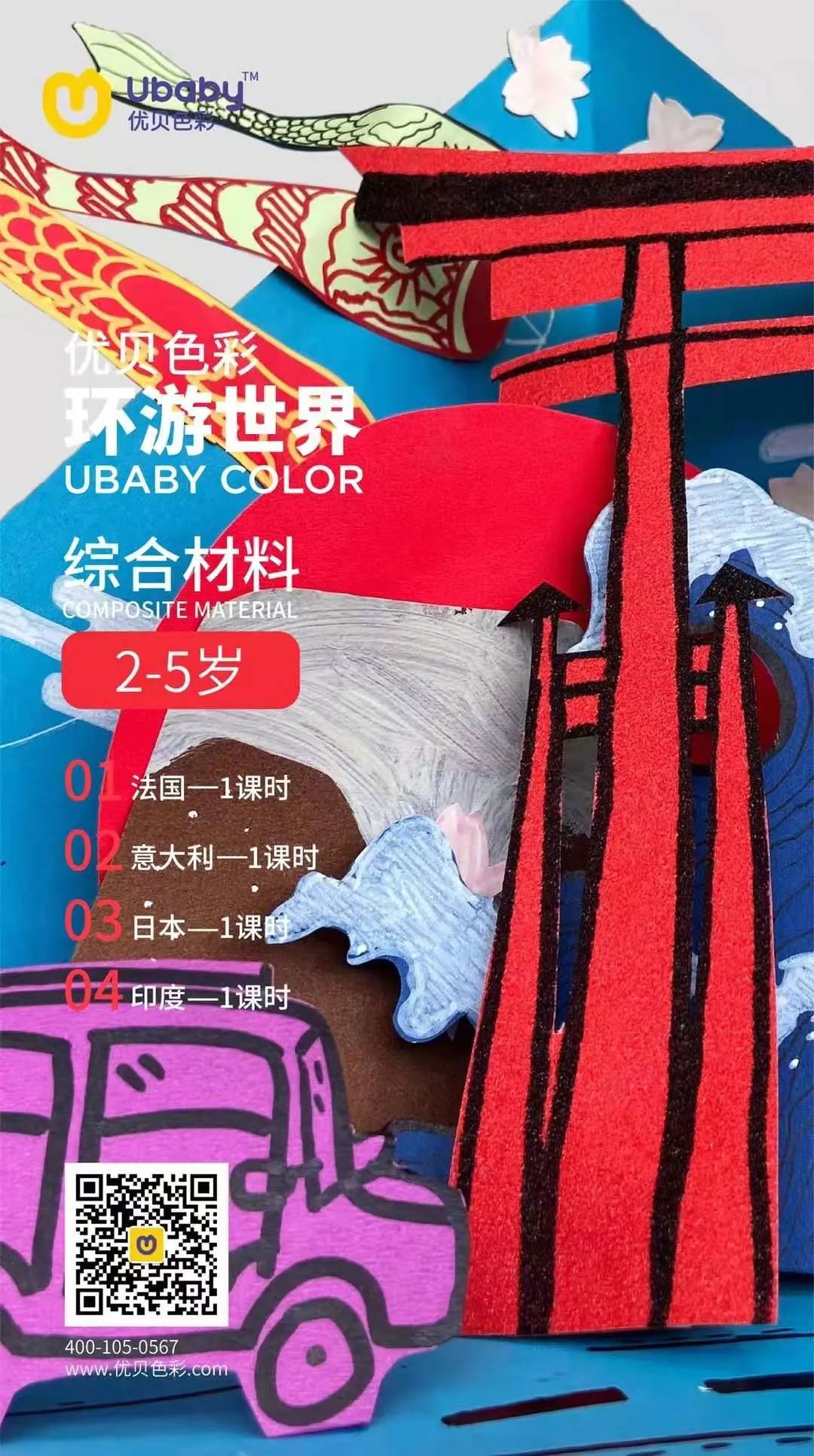 世界那么大,我想去看看。可谁成想,一场疫情阻隔了我们去探寻诗和远方的路。身体不能在路上,可探寻世界的心不能停,这个假期,就让优贝带着我们,从法国开始,去看看那个埃菲尔铁塔的壮观,再去意大利里“尝尝”地道比萨的滋味,再去精致小巧的邻国日本,感受一下东瀛的特色,最后一起到佛教起源的印度,感受古文化的魅力……这独特的世界之旅,保证让咱们的优贝娃流连忘返,将精彩的世界上,倾注于五彩缤纷的画板上吧!