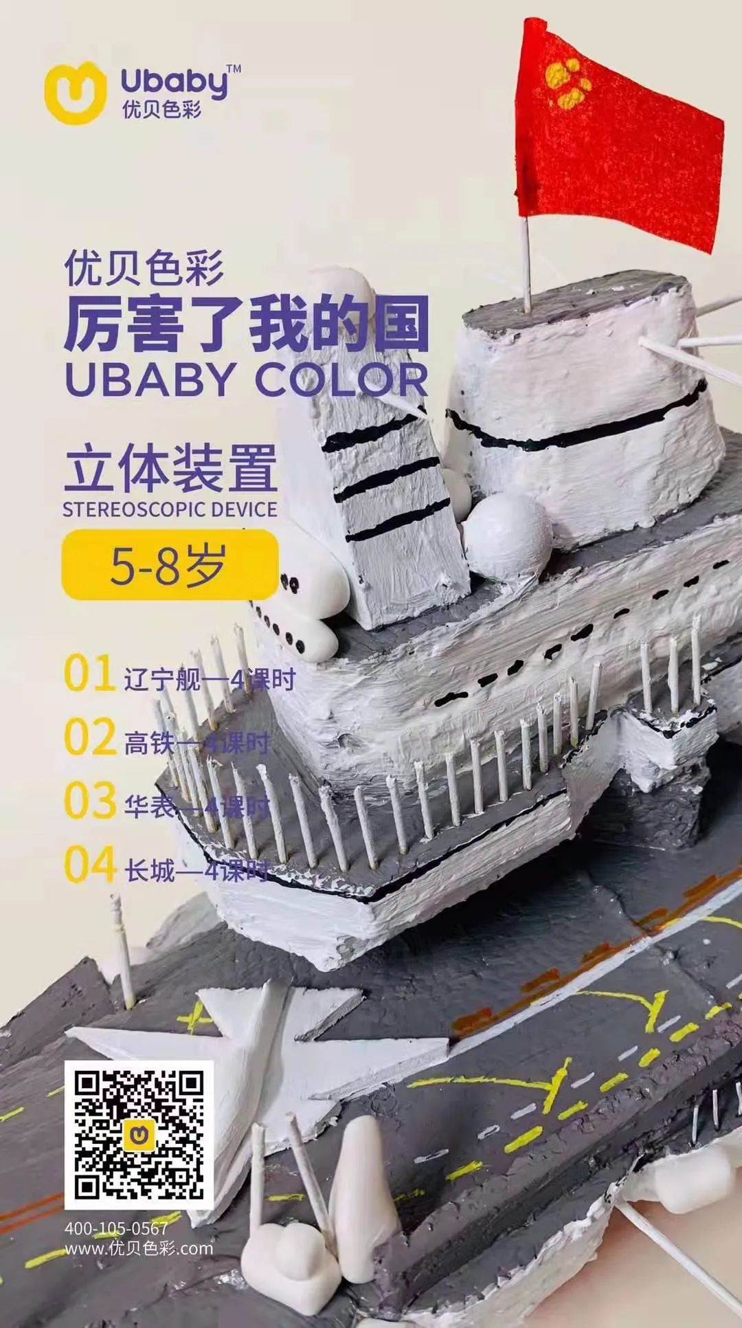国之强盛,得自于经济,军事,科技的强盛。当辽宁舰航行在辽阔的海洋,京沈高铁2.5小时往返的高速铁路,当巍峨秀伟的长城屹立在中华大地,我们的祖国已经走过70载。从一个贫穷落后的国家,发展成为如今的 第二大经济强国,从百废兴到百业昌盛,我们的国家骄傲里有太多名字需要我们去了解。“厉害了我的国”假期班,优贝老师讲美术课上可画性强,可学性强的辽宁舰、高铁,华表,长城列入其中,让我们的孩子更加懂得爱国的意义。