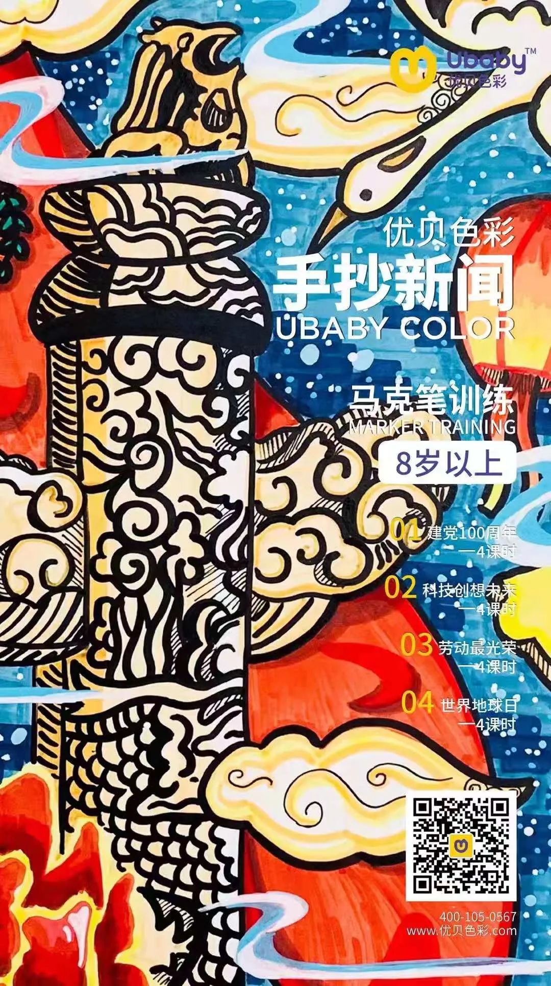 每次学校的暑假作业里,一定少不了手抄报这一项。让孩子自己发挥吧,孩子说,我不知道怎么画?家长帮忙指点吧,又是查百度,又是抄袭别人家孩子,最后免不了几句抱怨,把暑假作业“用彩笔画出心中天地”的核心含义搞得荡然无存。优贝的“手抄新闻”主题假期班,从时下最热点的新闻出发,将建党100周年,科技创新,劳动主题和环保主题列入其中,启发孩子的思维空间,落实在美术技法,这一实实在在的假期班,最能成就实实在在的假期作业。