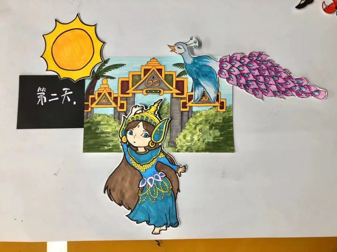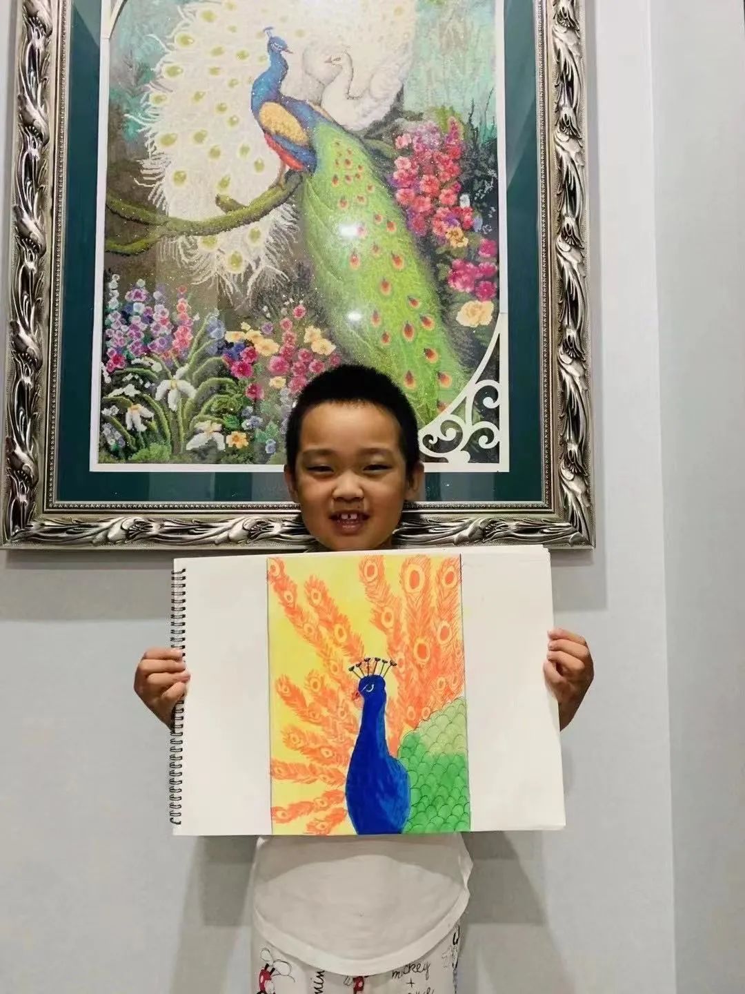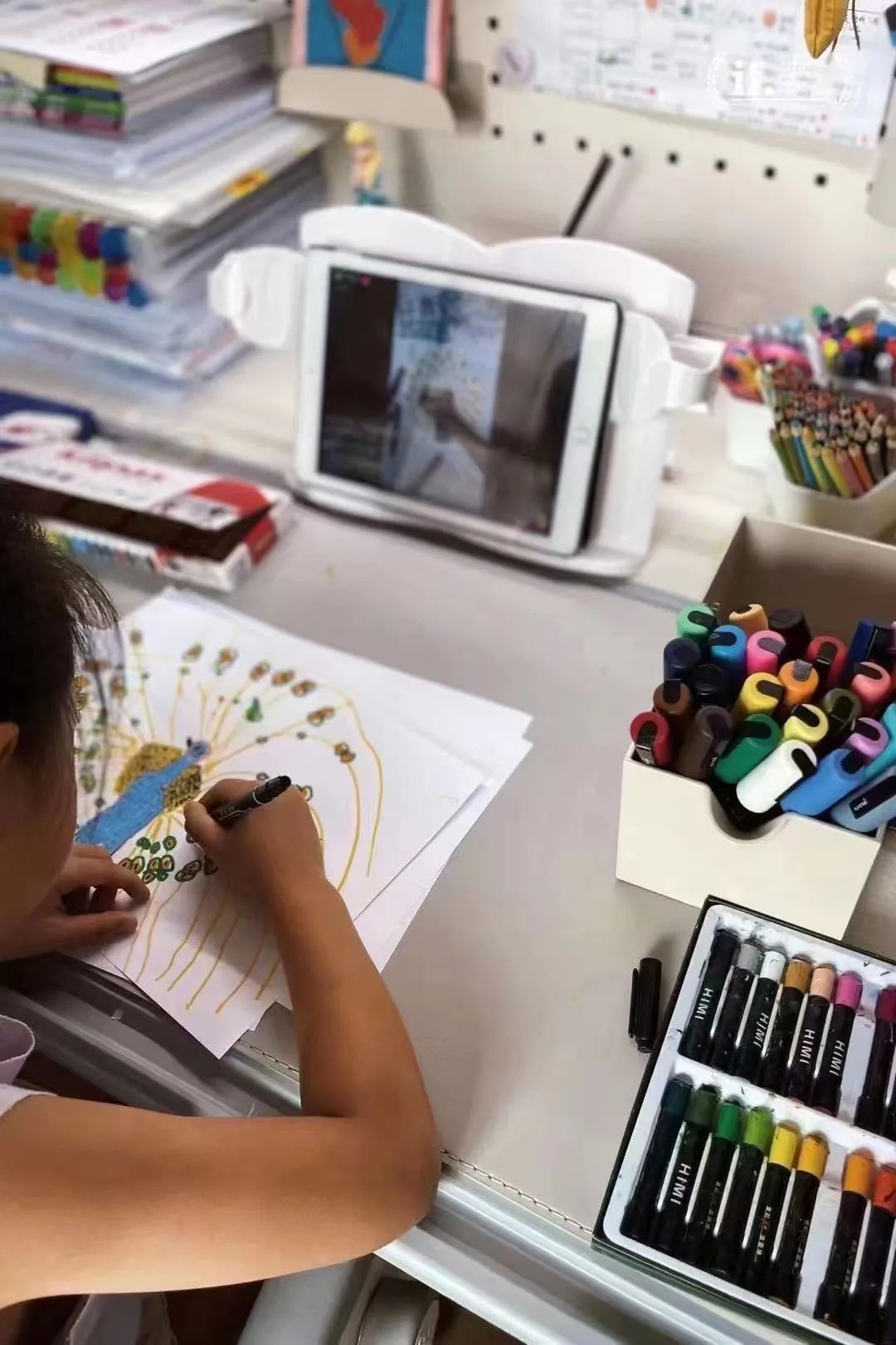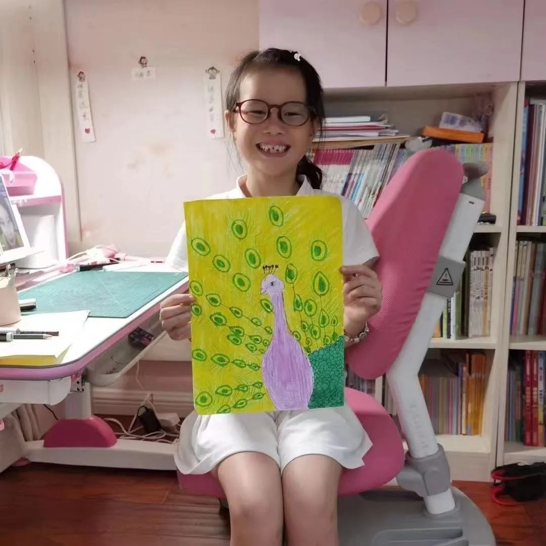 8月19日,上午一场,下午一场,从经典童话故事——孔雀公主讲起,屏幕前的孩子们摆好了画笔,绘画纸,还没等直播结束,孩子们的作品已经迅速“交作业”了!