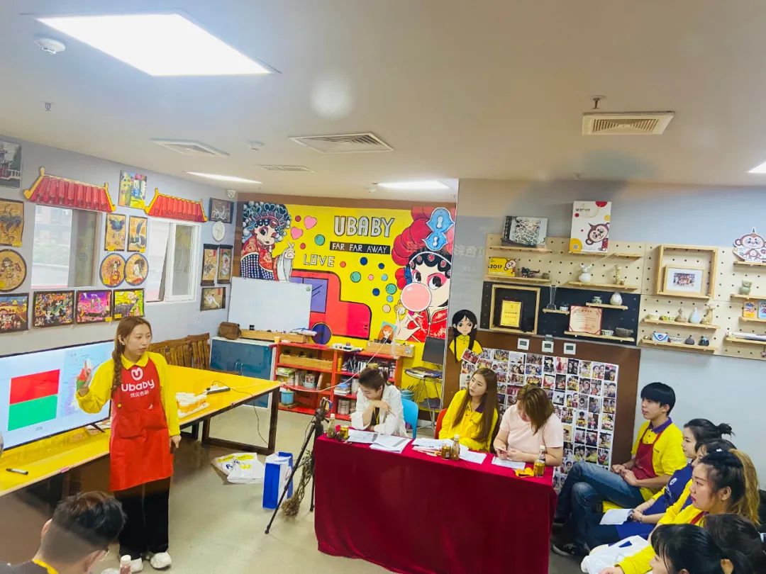 在这一份看似普通的试卷中,涵盖了文化,新闻,儿童心理学,企业文化等多维度的考量。例如,儿童爱发脾气可能处于哪一个敏感期?儿童的秩序感分几种?简述你对一堂好课的理解?简述孩子在早期学习美术的意义?优贝色彩的企业愿景是……“我们的考试可不是那种走走形式的,从笔试到实战,从外在形象到内在体现,都逐一打分。教研组为此准备的年度评定考卷中,包含了选择题,填空题,简答题等多种题型。