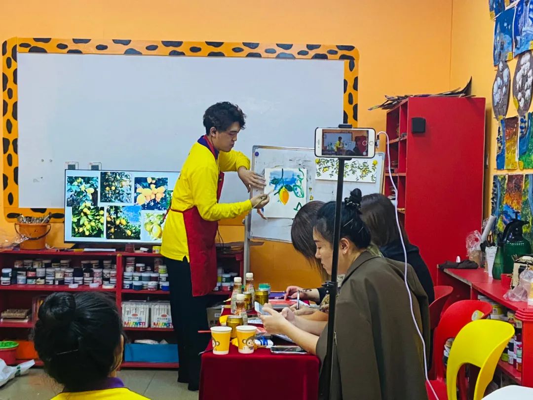 “海马不是马,那是什么动物呢?大家来看看,海马长得什么样呀?莹莹老师从动物的特征讲起,先切入文化知识点,让小朋友发现了海马的不同,接下来认识一下海马的构图特征。”在莹莹老师循循善诱的讲解中,“小朋友们”很快就被吸引住,开始与老师互动,回答起老师的问题。“大家知道什么是明暗关系吗?什么是阴影呢?”“我们应该从哪里画起呢?……在一堂看似普通的美术课中,处处体现着老师们细节上的用心以及授课水平的高低。