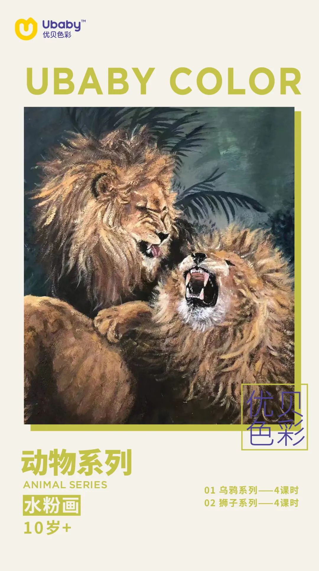 优贝色彩自主研发的“108色”水粉,让孩子可以酣畅淋漓地抒发创作的灵感。水粉课堂“乌鸦系列”和“狮子系列”,通过细微观察和动态展示,让孩子得到更系统的专项训练。