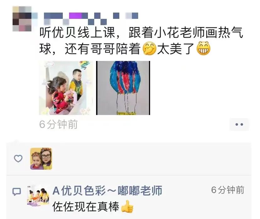 线上课程对于老师和小朋友都是很不容易的,但优贝色彩的小朋友在小花老师的引导下,完全能呈现出一副生动的作品。看,五颜六色的热气球已经飞起来啦!
