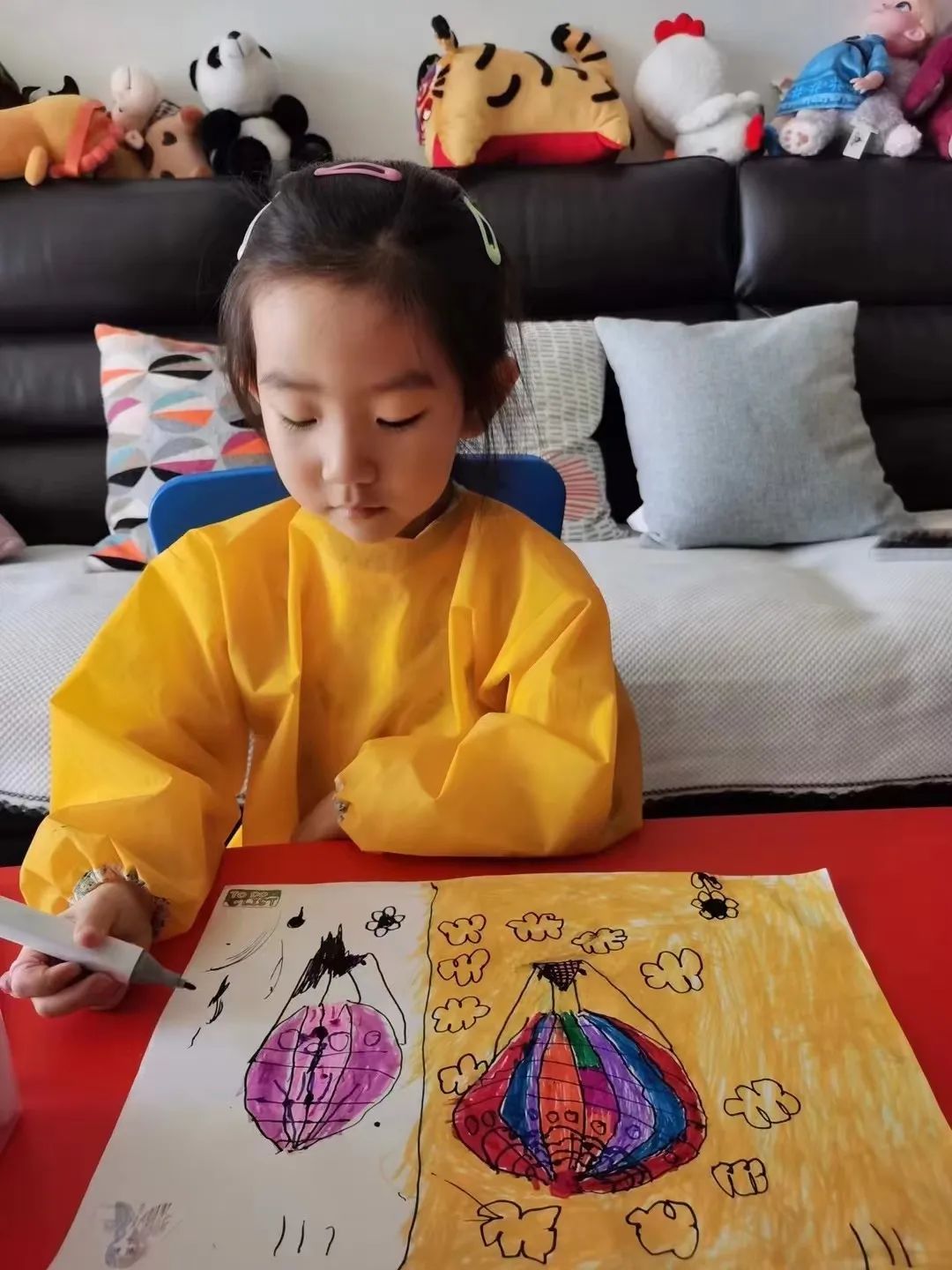 本次公益课堂也是从孩子出发,选择了符合孩子基础认知,在一个小时之内可以跟画完成的课程方式,通过轻松有趣的引导,鲜艳的插画故事,让大家放松心情,愉快绘画。