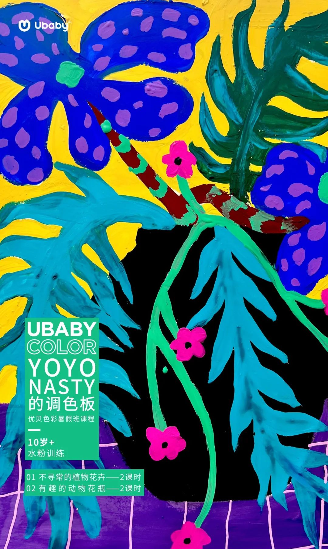水粉课堂中,我们要认识一位插画师Yoyo Nasty,她的画充满了天真、原始的生命力和可爱又朋克的幻想。我们感受她的表现力,她的色彩,并用优贝色彩自主研发的“108色”水粉,让孩子可以更加酣畅淋漓地抒发创作灵感。